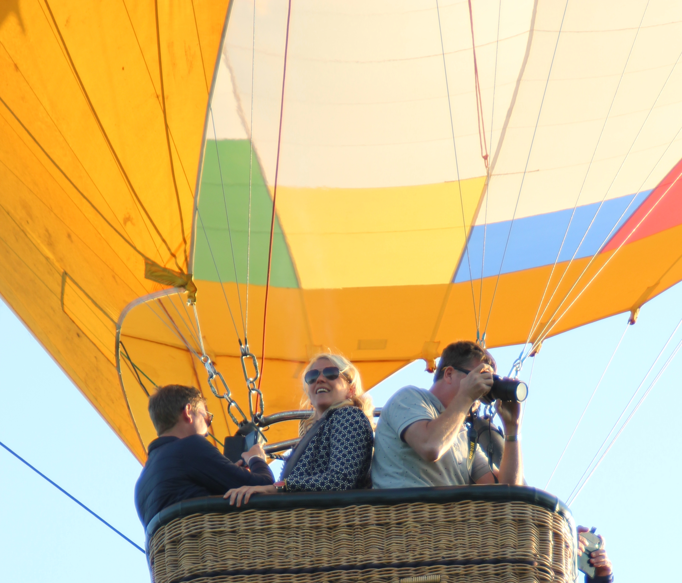 Dan vervolgt de luchtreis zich richting Tjeukemeer en steekt Johannes het meer over om vervolgens een mooie landingsplek te zoeken in de buurt van Lemmer. De boer zwaait vanaf zijn tractor naar Johannes en roept hem toe dat hij de ballon neer mag zetten in zijn weiland. Na champagne en lekkere hapjes is het nog even napraten met elkaar en samen nagenieten van deze once in a lifetime experience!